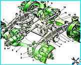При такой подвеске промежуточный и задний мосты качаются относительно оси балансира