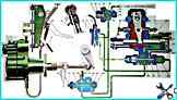 Управление механизмом переключения передач делителя осуществляется пневмомеханической системой (рис.1), которая состоит из редукционного клапана 4 давления, крана 3 управления делителем, клапана 1 включения делителя и воздухопроводов
