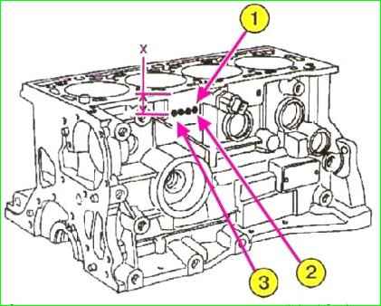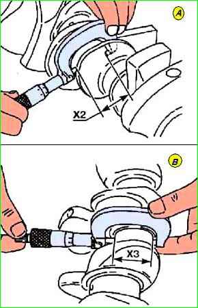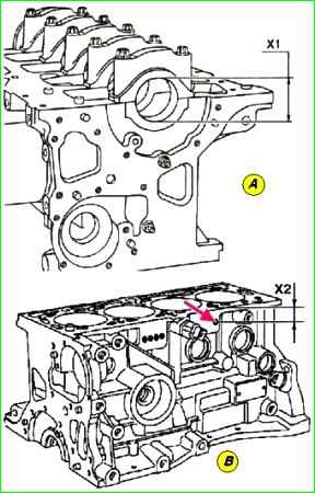 Иінді біліктің тіректерінің диаметрлері (X1 4-сурет) май сүзгісінің үстіндегі аймақта бұрғылау арқылы белгіленеді (4-сурет (В) көрсеткі бағытында).