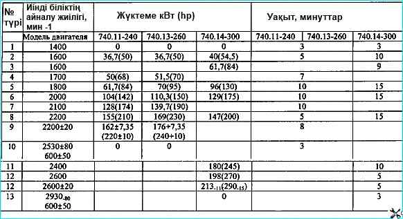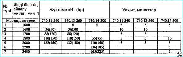 Қозғалтқыш тораптарын жөндегеннен немесе ауыстырғаннан кейін ауыстырылған бөлшектерге байланысты қозғалтқышты ГОСТ 14846-81 талаптарына сәйкес жабдықталған стендте төмендегі режимдердің бірінде іске қосыңыз: