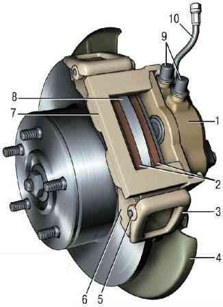 Алдыңғы тежегіш суппорт оны ауыстыру немесе жұмыс цилиндрлері мен тежегіш дискіні ауыстыру үшін алынады.
