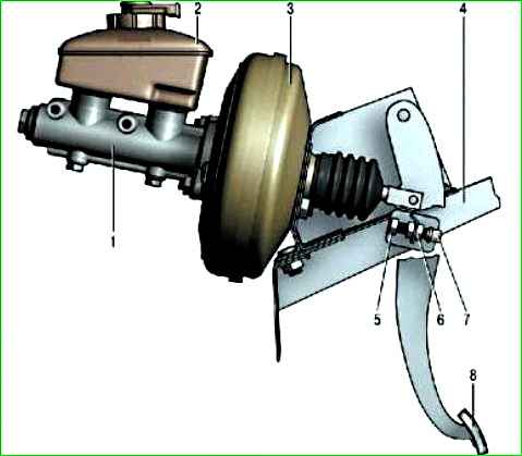 - Вакуумдық күшейткіш штанганың реттеу болтының бас цилиндрдің бекіту жазықтығына қатысты шығуы бұзылған
