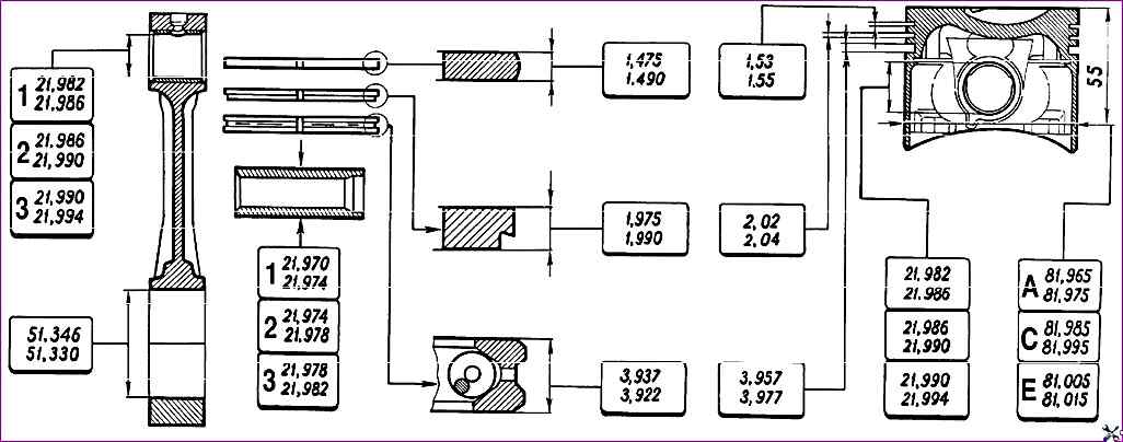 Бұл сыныптар қозғалтқышты жөндеу кезінде кез келген цилиндр үшін поршеньді таңдау үшін жеткілікті, өйткені поршеньдер мен цилиндрлер өлшемдері шамалы сәйкес келетін сыныптарға бөлінеді.