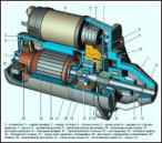 5722.3708 стартер түрі (1-сурет) планетарлық беріліс қорабымен және электромагниттік екі орамды тартқыш релесімен біріктірілген тұрақты магниттерден қозуы бар тұрақты ток электр қозғалтқышы