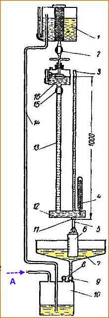 Поршеньді су кіргенше жылжыту керек шыны түтік 1 резервуардағы су деңгейінен 3 шкала бойынша 100 см биіктікке жетеді, содан кейін 8 кранды жабу керек.