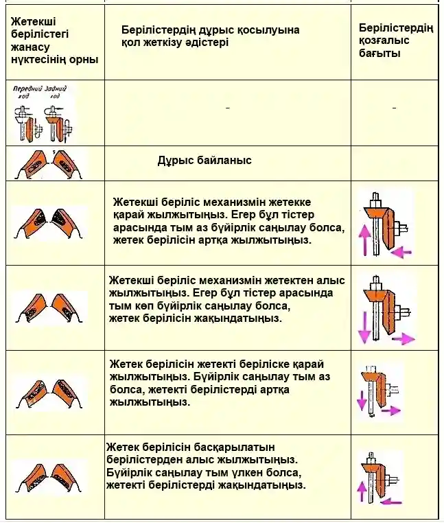 Редуктордың жаңа конустық берілістерін орнатқанда, олар контактілі патчқа, «бояудағы» және қосылымдағы бүйірлік саңылауларға сәйкес реттелуі керек (мақала соңындағы 1-кесте)