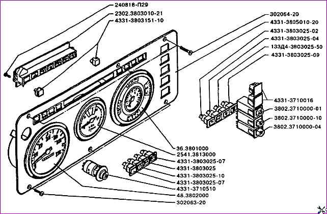 Каталогқа сәйкес ZIL-5301 автокөлігінің аспаптар панелін құрастыру мәліметтері