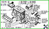 Суретте қосалқы бөлшектер каталогына сәйкес бөлшектерді орнату орындары мен олардың белгілеулері көрсетілген.
