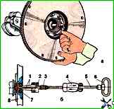 Жөндеу кезінде серіппелі платформаға орнатылған құрылғының (1-сурет) көмегімен алдыңғы ось арқалығын иілу мен бұралуды тексеру керек