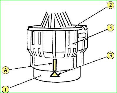 Повернуть запорное кольцо 3 колодки по часовой стрелке до совпадения прорези «А» с меткой «Б».