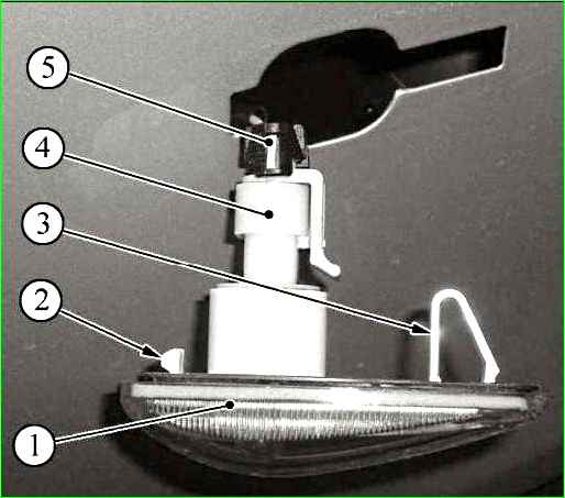 Извлекаем повторитель из отверстия в переднем крыле