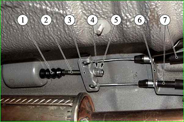 Установка тросов стояночного тормоза