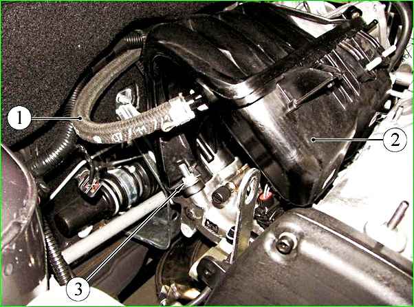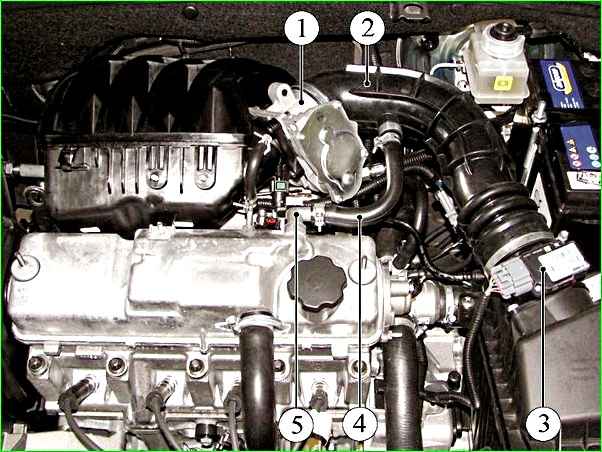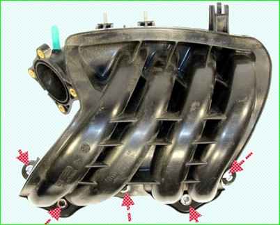Сдвигаем ресивер со шпилек впускной трубы и вынимаем из моторного отсека