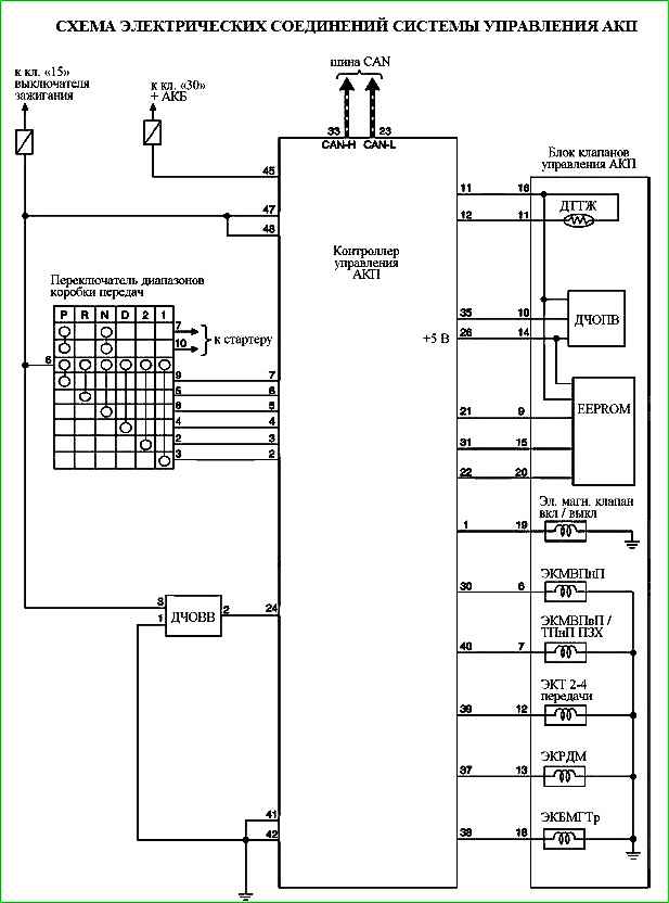 Схема электрических соединений системы управления АКП