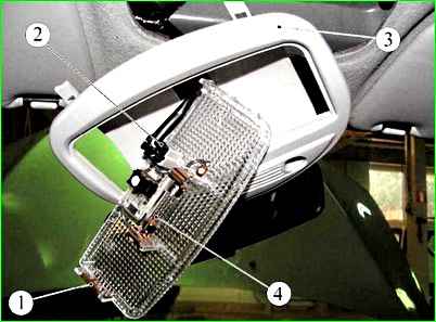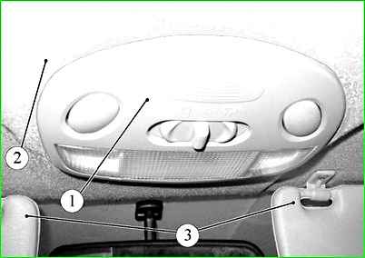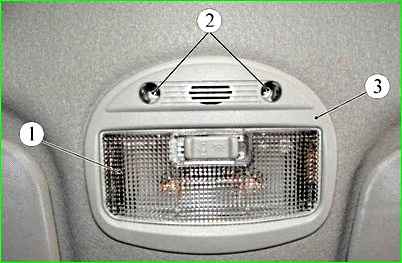 С помощью плоской отвертки отжимаем фиксаторы и снимаем крышку блока 1, рисунок 6, освещения салона
