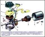 Комплект очистителя ветрового стекла состоит из моторедуктора (электродвигателя с редуктором), рычагов и щеток
