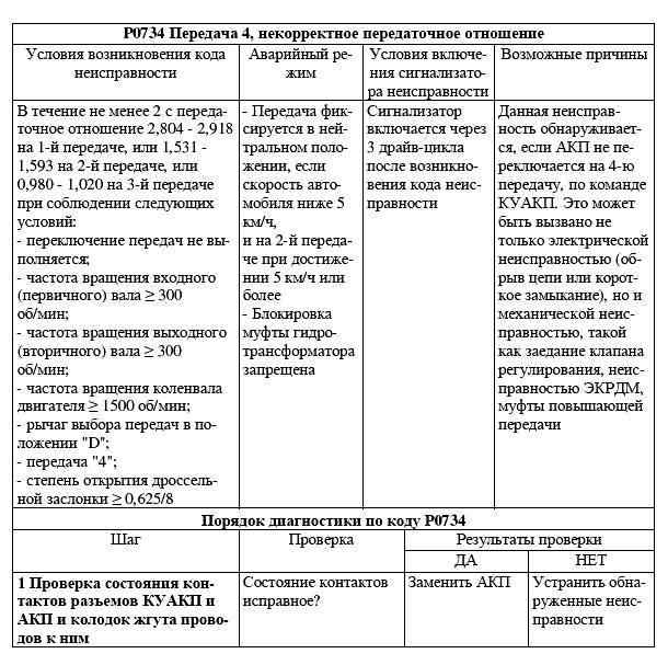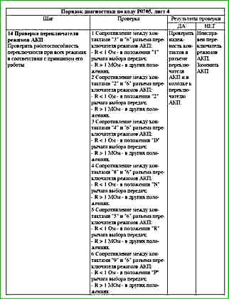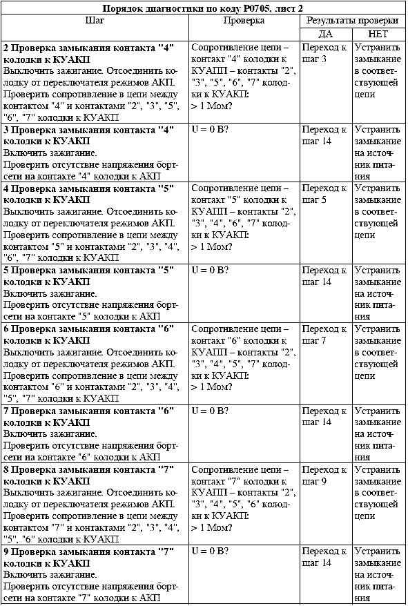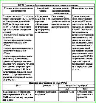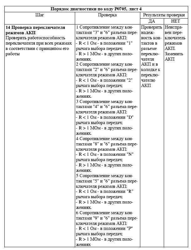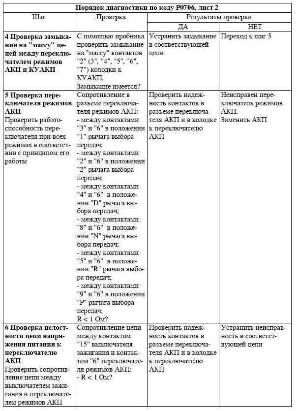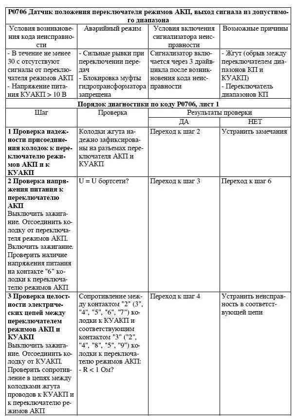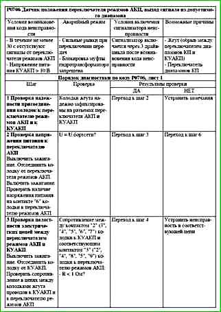 P0706 Датчик положения переключателя режимов АКП, выход сигнала из допустимого диапазона