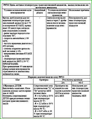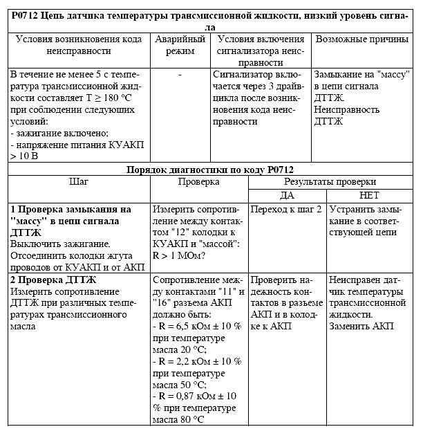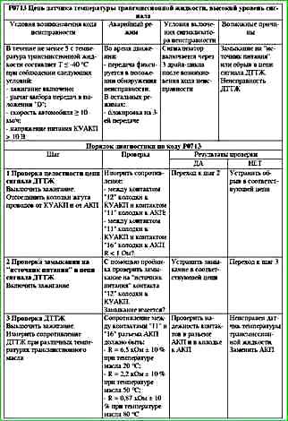 P0711 Цепь датчика температуры трансмиссионной жидкости, выход сигнала из допустимого диапазона