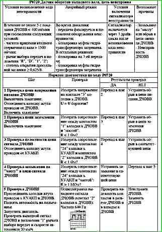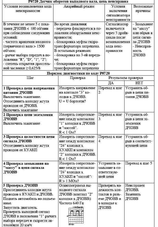 P0720 Датчик оборотов выходного вала, цепь неисправна