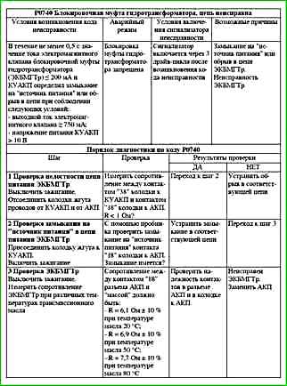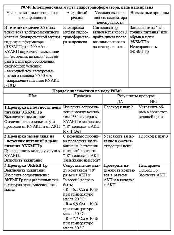 P0740 Блокировочная муфта гидротрансформатора, цепь неисправна