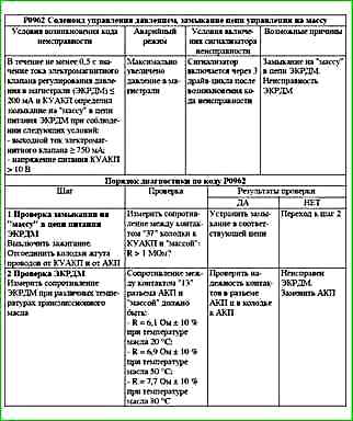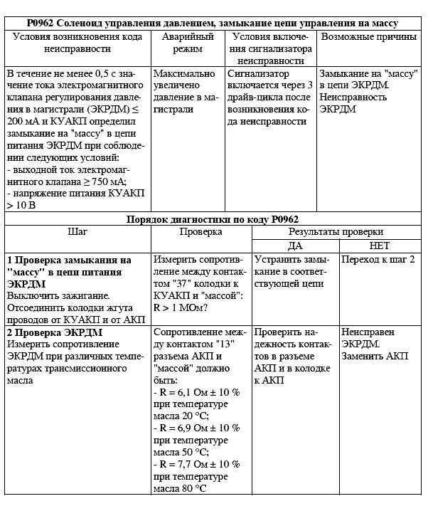 P0962 Соленоид управления давлением, замыкание цепи управления на массу