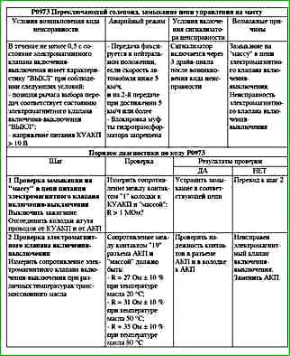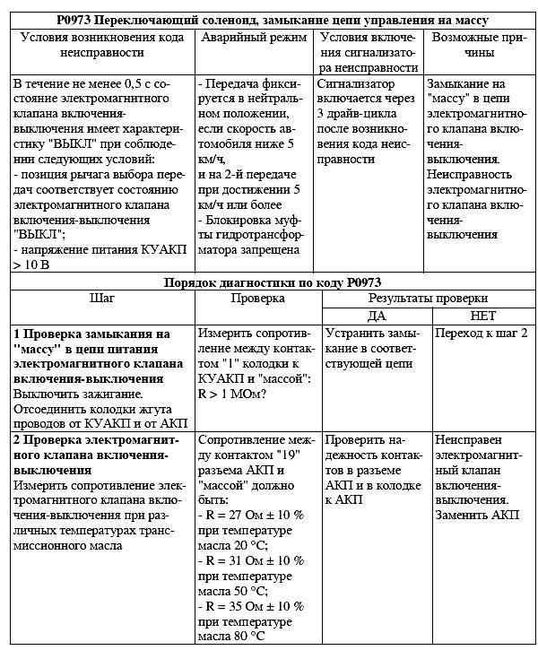 P0973 Переключающий соленоид, замыкание цепи управления на массу