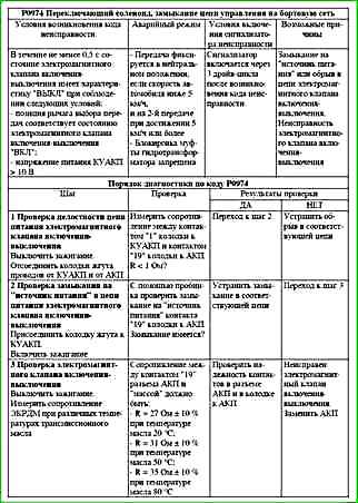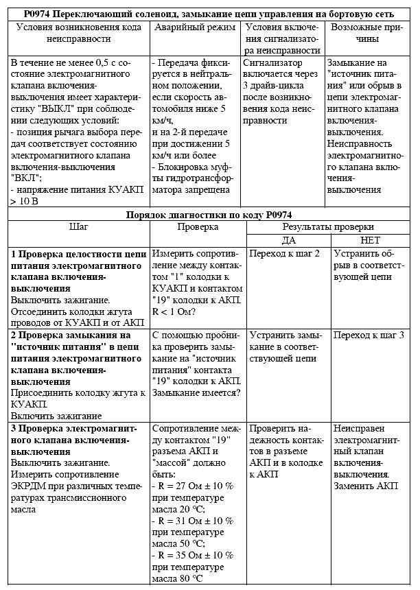 P0974 Переключающий соленоид, замыкание цепи управления на бортовую сеть