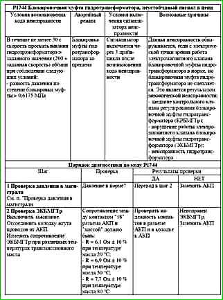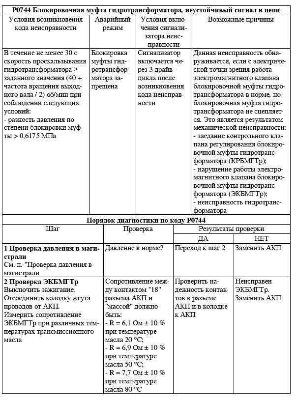 P1744 Блокировочная муфта гидротрансформатора, неустойчивый сигнал в цепи