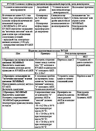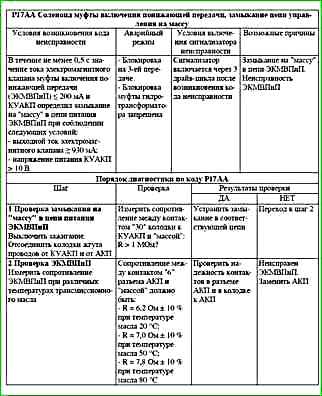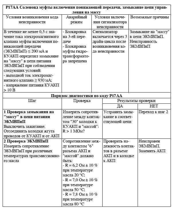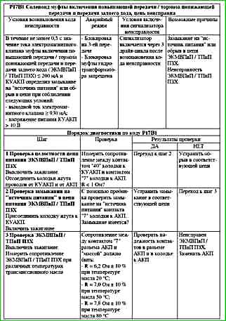 P17AA Соленоид муфты включения понижающей передачи, замыкание цепи управления на массу