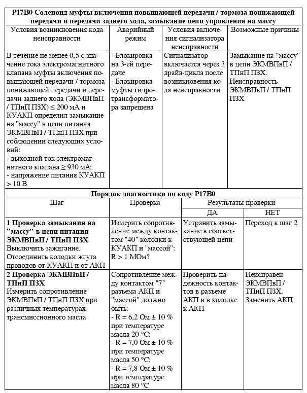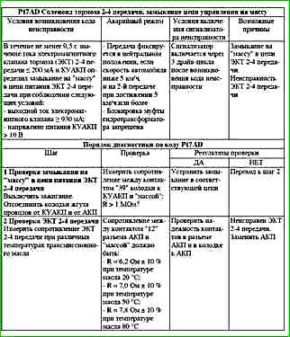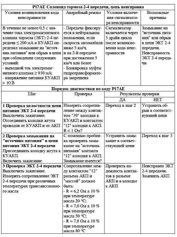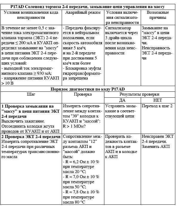 P17AD Соленоид тормоза 2-4 передачи, замыкание цепи управления на массу