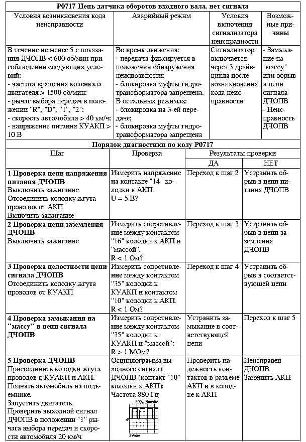 P0717 Цепь датчика оборотов входного вала, нет сигнала
