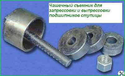 Новый подшипник запрессовываем чашечным съемником, перед этим очистив внутреннюю поверхность ступицы и смазав ее.