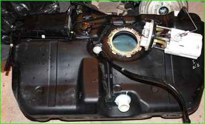 Устанавливаем топливный бак в обратной последовательности. После установки проверяем на герметичность всех соединений.