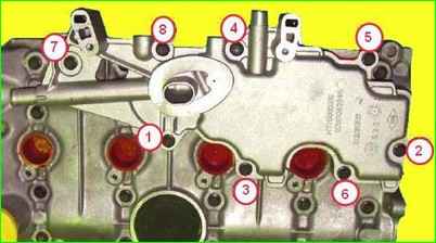 Устанавливаем маслоотделитель и затягиваем болты его крепления в указанной последовательности предписанным моментом.