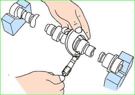 - - Проверьте зазор шеек распределительных валов в опорах головки блока, для этого;
