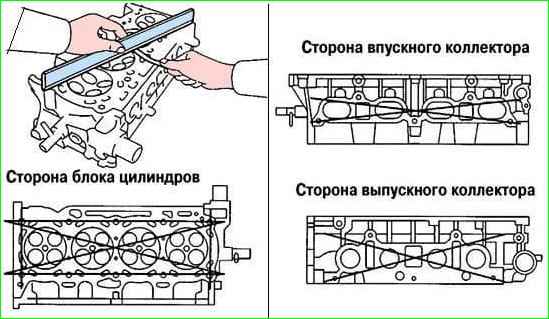 Линейкой и щупом проверяем неплоскостность посадочных поверхностей головки блока цилиндров (рисунок 2).