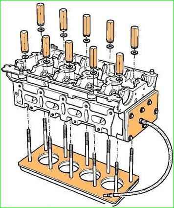 Проверяем головку блока цилиндров (отсутствие трещин и сквозной коррозии) с помощью соответствующего приспособления (рисунок 3).