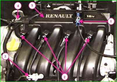 Отсоединяем трос 1 (рисунок 1) привода дроссельной заслонки от впускного коллектора 5.