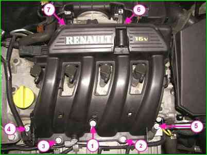 Головкой на 8 отворачиваем семь болтов (рисунок 2) и снимаем впускной коллектор в сборе с датчиком температуры воздуха и датчиком давления поступающего воздуха.