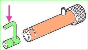 Примечание. Обратите внимание на направление установки форсунки, наконечник форсунки должен быть направлен к центру цилиндра (см. по стрелке, рис. 4).