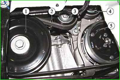 - - снять ремень 2 привода вспомогательного оборудования;