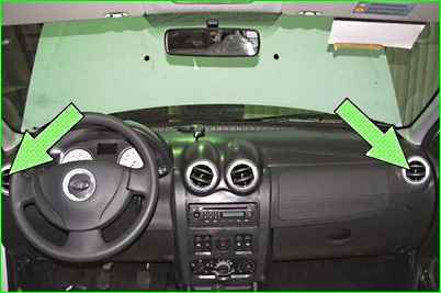 - - центральное и боковые сопла вентиляции на панели открыть и установить в нейтральное положение;