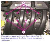 Система зажигания двигателя К4М состоит из индивидуальных для каждого цилиндра катушек зажигания и свечей зажигания.