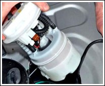 Модуль бензонасоса снимаем при полном или частичном отказе электробензонасоса, засорении фильтра бензонасоса или неисправности датчика указателя топлива