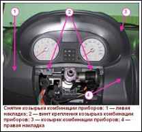 Комбинацию приборов проводим при замене или ремонте комбинации приборов, а также при снятии панели приборов