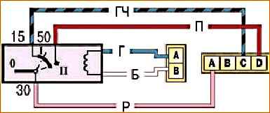 - II - включен стартер, под напряжением контакты 30 и 50 и включено зажигание