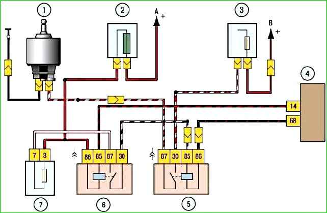 Управляет работой вентиляторов ЭБУ системы управления двигателем, на который поступает сигнал от датчика температуры охлаждающей жидкости.