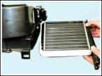 - – теплообменник отопителя (радиатор), предназначенный для нагрева, поступающего в салон воздуха теплом охлаждающей двигатель жидкости;