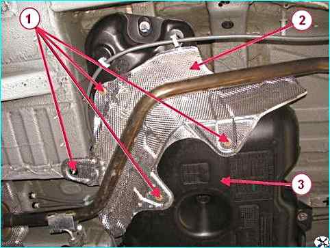 Снимаем теплозащитный экран 2 топливного бака.