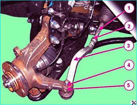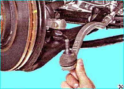 Вывернуть и снять наружный наконечник с рулевой тяги, отметив количество оборотов для дальнейшей установки.